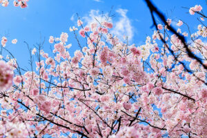白やピンクなどのカラフルな花が咲き誇り、青い空とのコントラストが魅力ですよね。